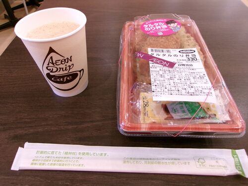 東京都昭島市にあるザ・ビッグ昭島店。 イオンドリップコーヒ―のカフェオレと、タルタルのりオリジン弁当。オリジン弁当で安い弁当といえば、こちらで、現在は本体価格330円。 2003年にジャスコ昭島店がオープン、6年でディスカウント型スーパーの業…